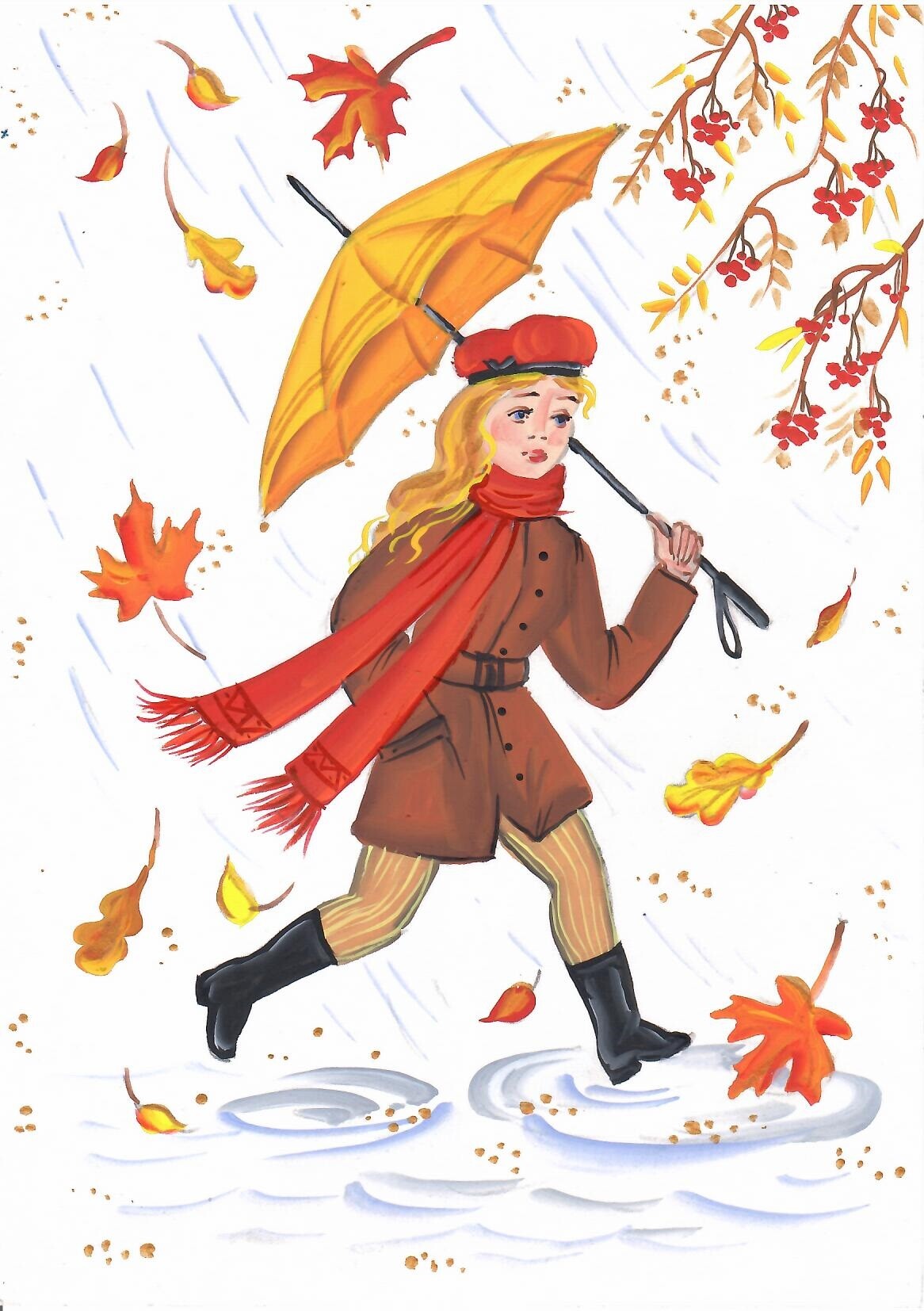 14 Урок. Осенний пейзаж Женщина с зонтиком