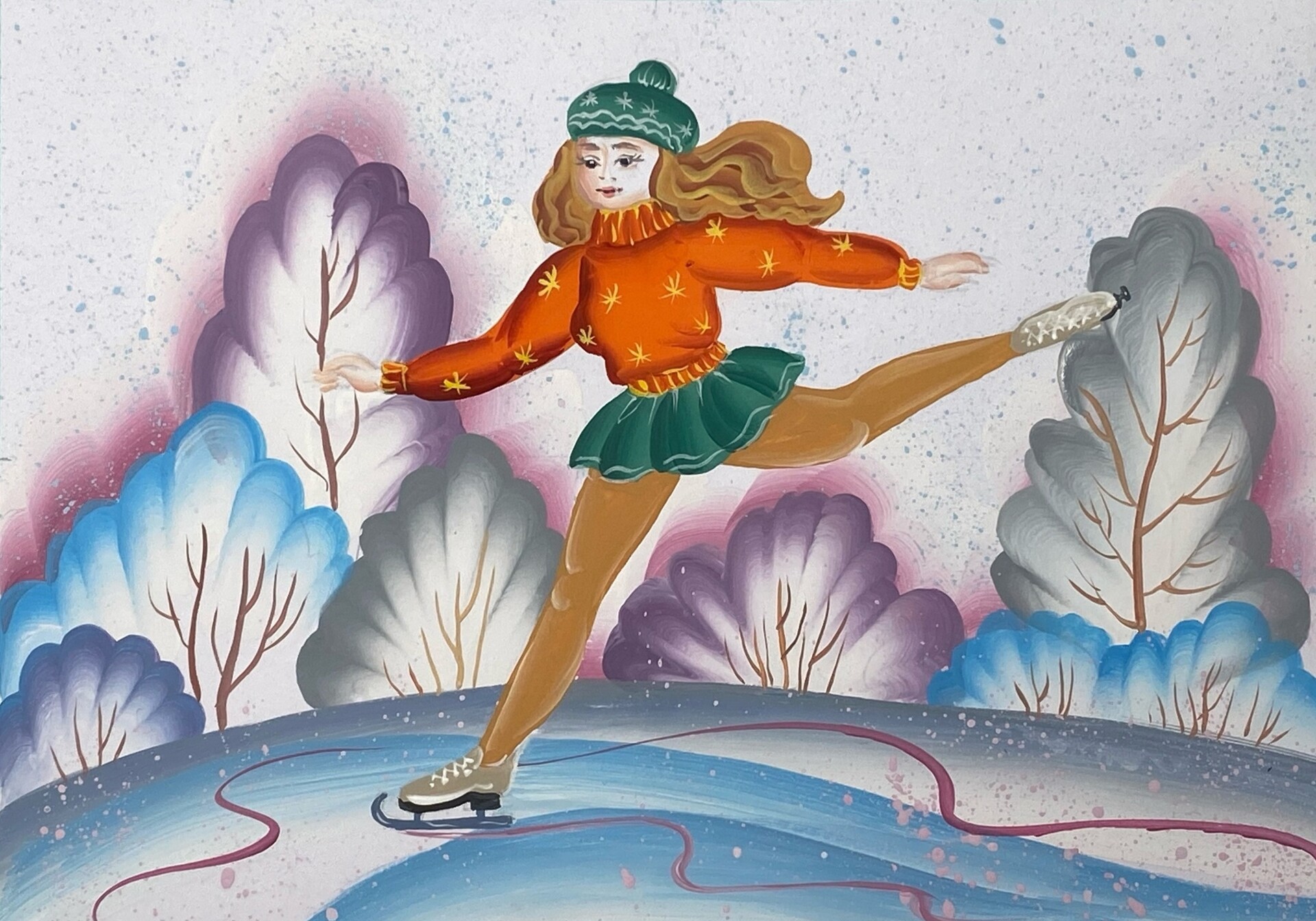 11 Урок. Зимний пейзаж. Фигуристка на катке